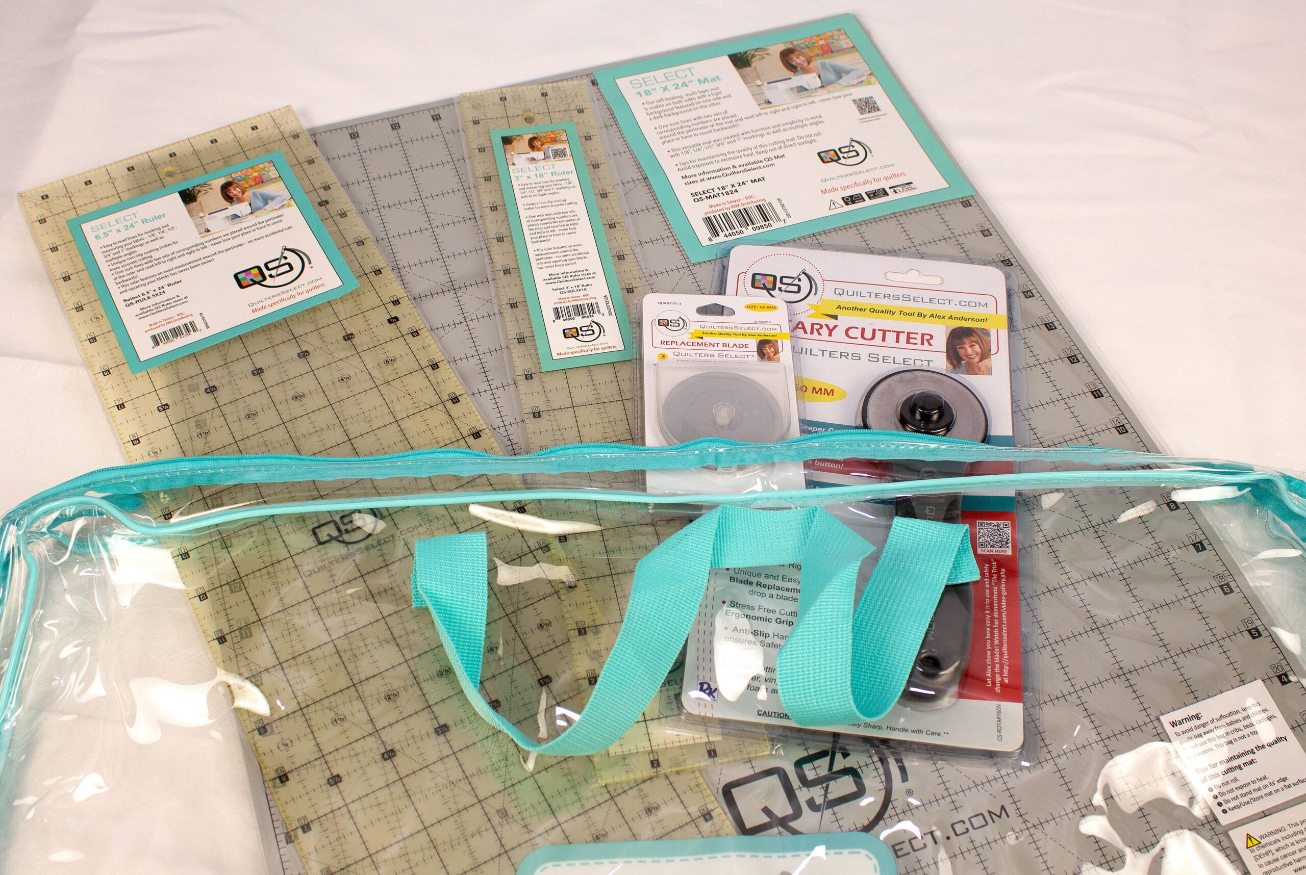 A strip cutting starter set built for accuracy! Featuring two Quilters Select strip set rulers with the Unique Non-Slip coating and the Quilters Select 60mm rotary cutter, this bundle makes short work of cutting tasks. You will love the added power of the 60mm rotary cutter for cutting through multiple layers with ease (spare blades included). The dual sided 18” x 24” mat is large enough to accommodate full width of fabric cuts while still being sized for travel to classes & workshops. All packaged together in a handy Quilters Select Vinyl Project Bag.