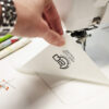 Place “grip side down” on bed of machine. Special grip surface clings without leaving adhesive residue. Sheet may be cut to expose feed teeth or bobbin area if desired.